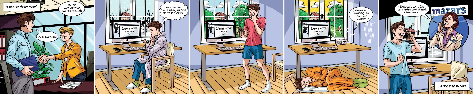 Na našem výběrku od tebe nepožadujeme stojku na hlavě a chovatelský průkaz hadů. A také tě nenecháme týdny viset bez odpovědi. Ozveme se všem, úspěšným i neúspěšným, a protože je pro nás tvá budoucnost důležitá, poskytneme ti i milou zpětnou vazbu.